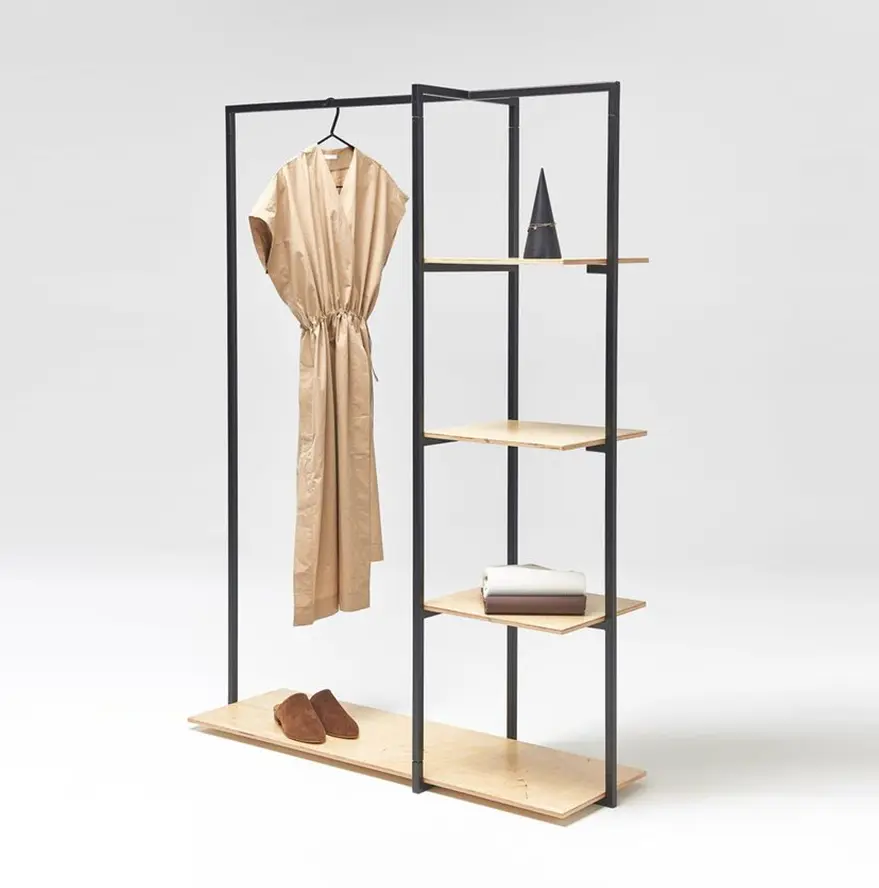 Perchero con repisa fabricado en estructura de fierro de alta resistencia, con un diseño moderno y funcional.